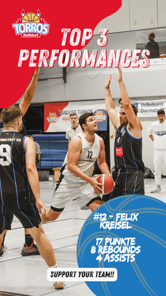 Einzig im dritten Viertel konnten die Gäste das Spiel punktemäßig ausgeglichen gestalten, war es doch eine Phase, in der die Torros nicht so gut trafen wie in den anderen Vierteln und der SV 98 sich mehrere Mal erfolgreich durchsetzen konnte.