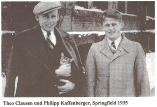 Diese Begegnung war nicht nur der Beginn einer Freundschaft, sondern auch der erste Kontakt von Theo Clausen mit dem fernen Roßdorf. Nach ihrem Studium in den USA trafen sich beide 1936 während der Olympischen Spiele in Berlin, wo Theo Clausen als Dolmetscher im Olympischen Dorf tätig war. Verständlich, das der Freund zur Roßdörfer „Kerb“ eingeladen wurde. Aus dem Hause Kaffenberger ist der Ausspruch überliefert:
